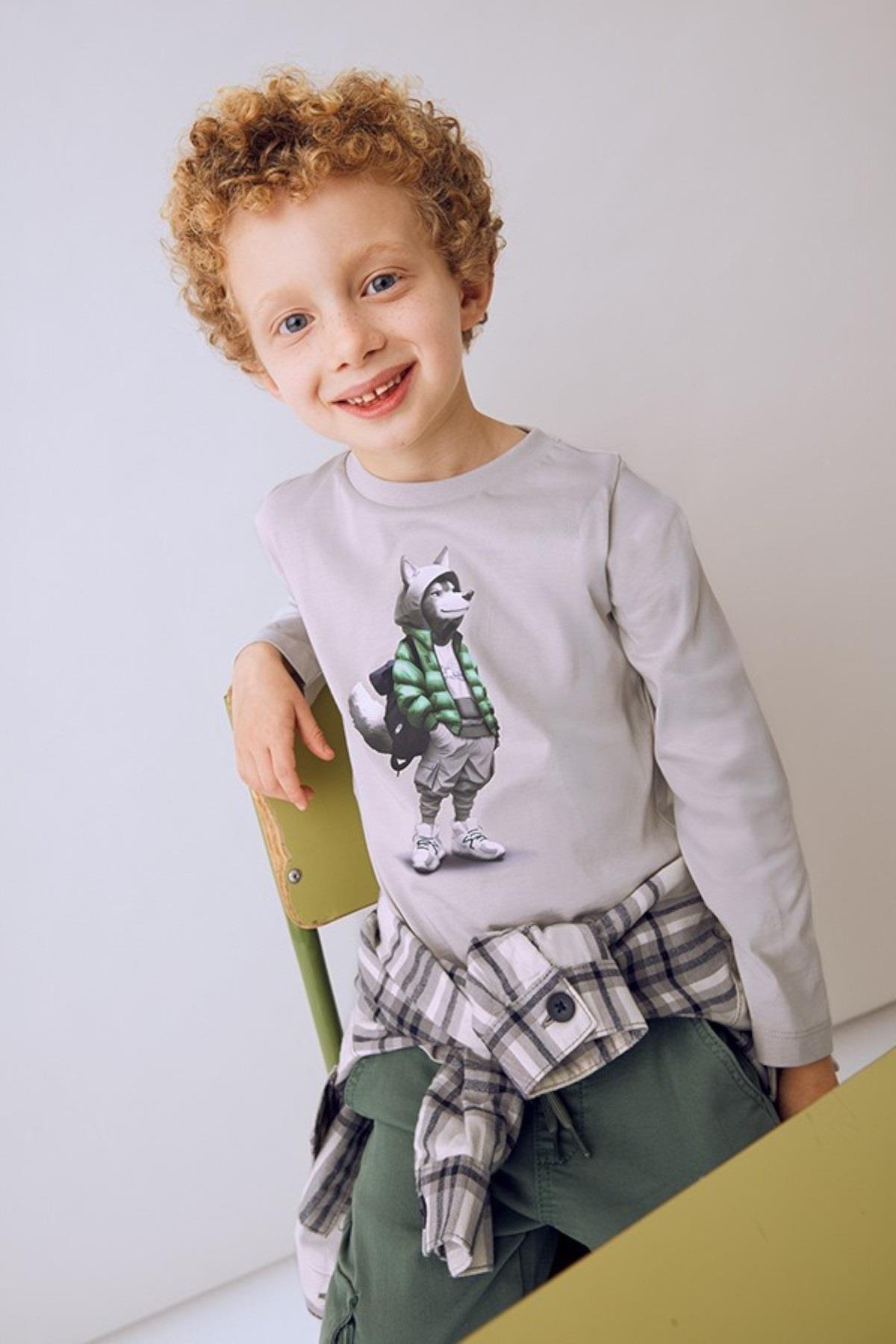 Mayoral Erkek Çocuk 4-9 Yaş Baskılı Uzun Kol T-shirt Gri (26KECMYR4083)