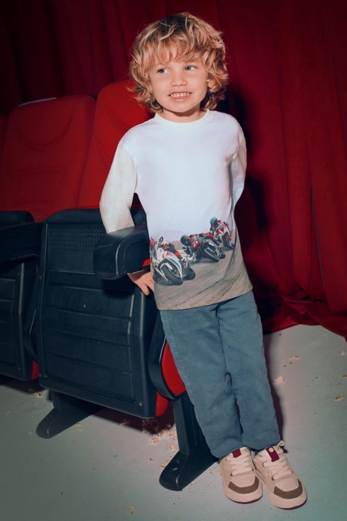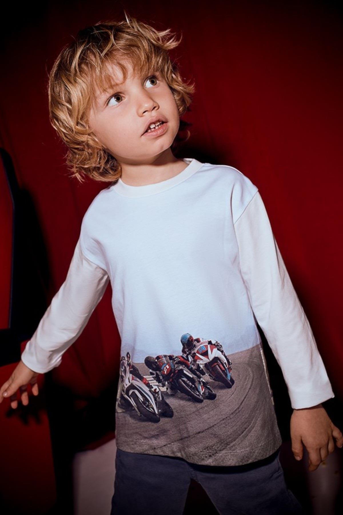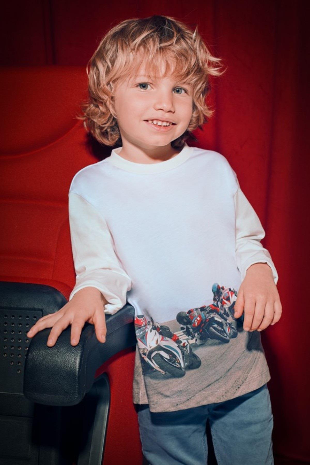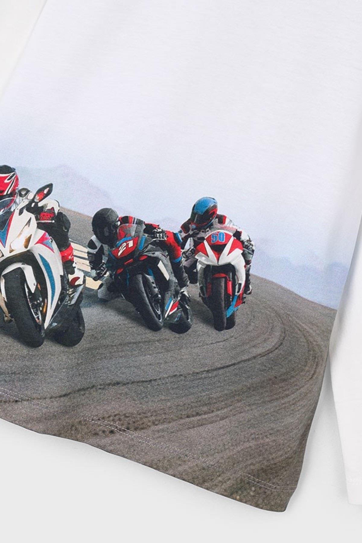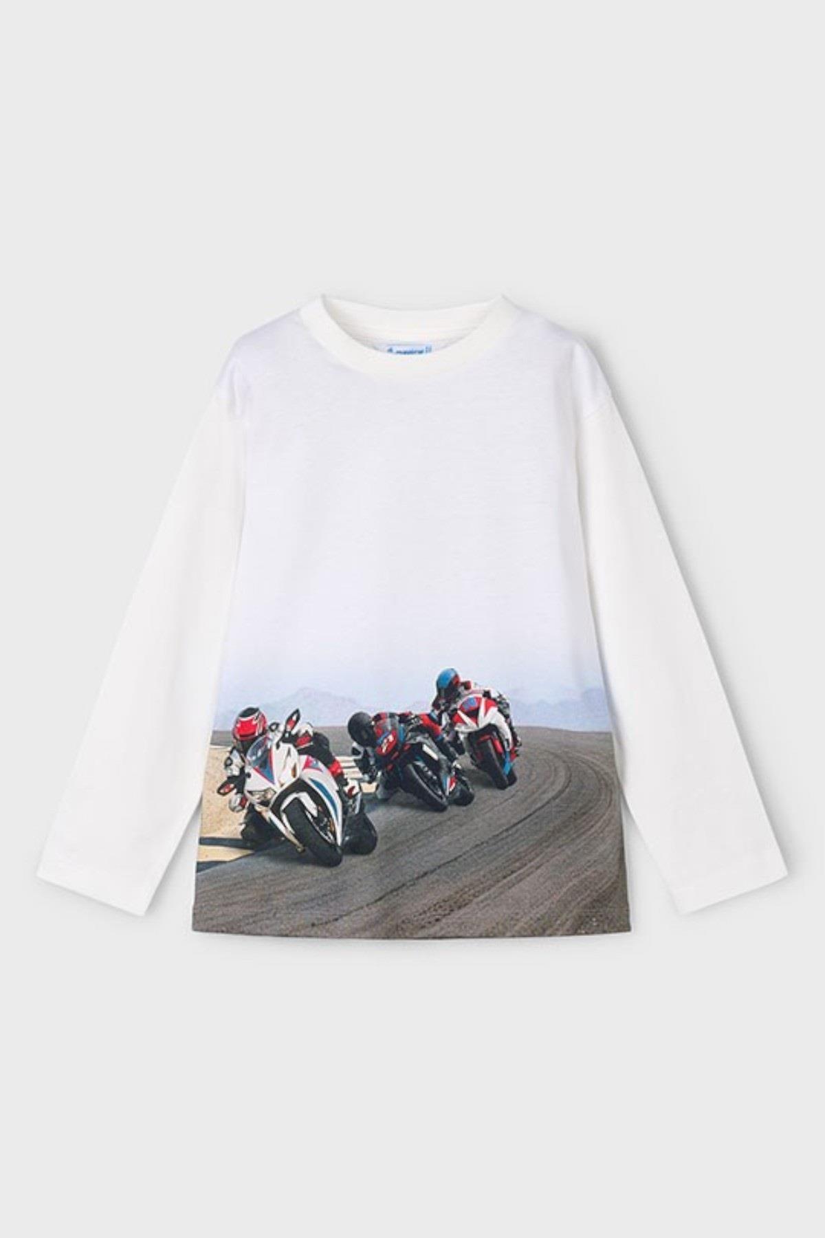Mayoral Erkek Çocuk 4-9 Yaş Motosiklet Desenli Uzun Kol T-shirt Ekru (26KECMYR4094)