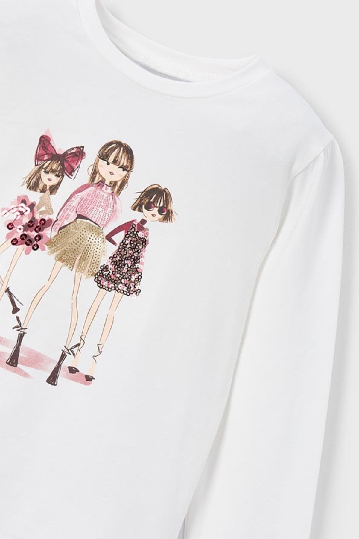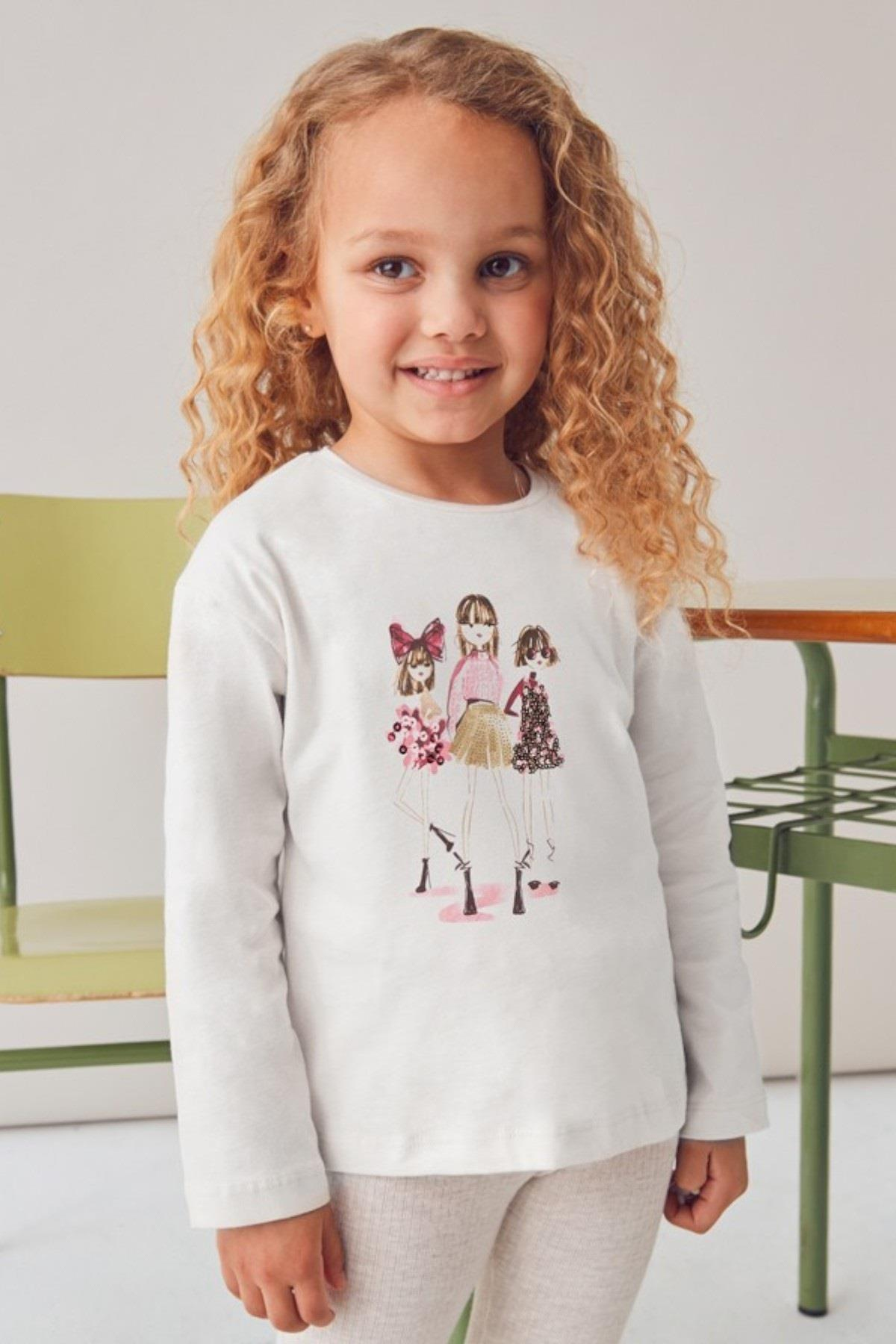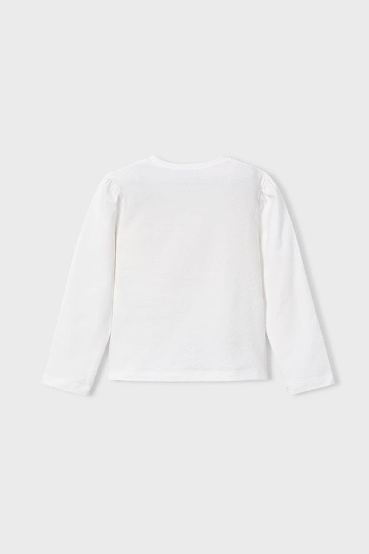 Mayoral Kız Çocuk 4-9 Yaş Baskılı Uzun Kol T-shirt Krem (26KKCMYR4011)