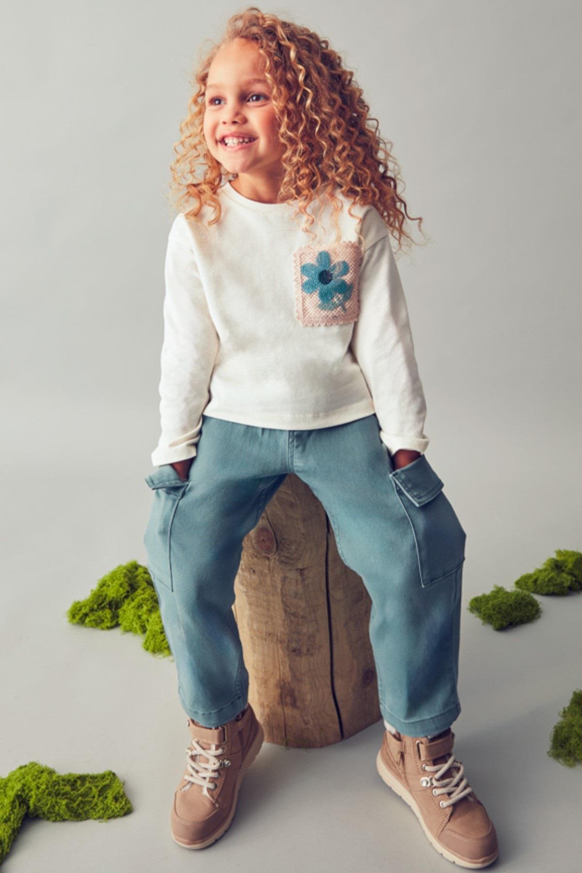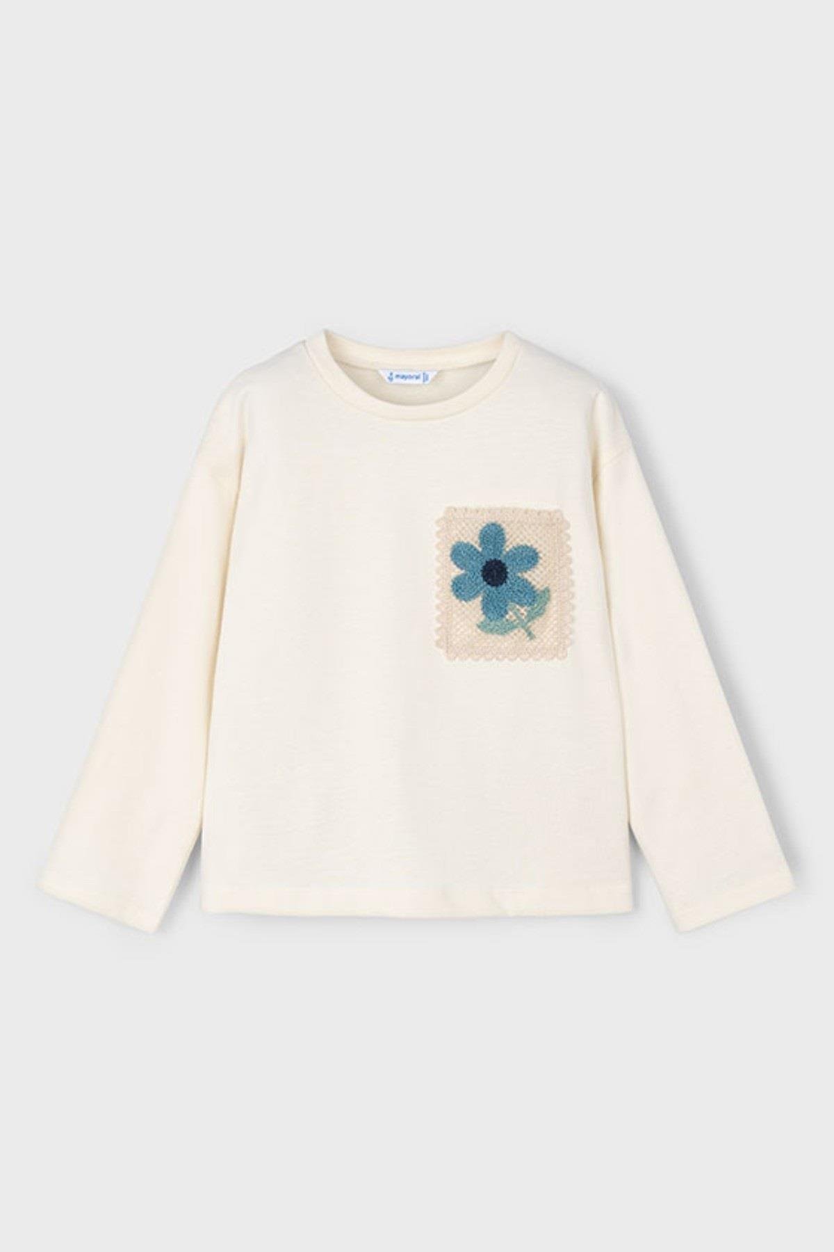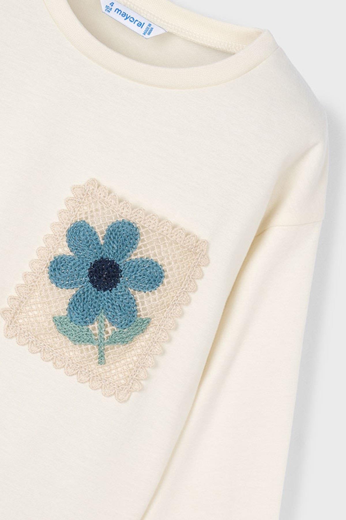Mayoral Kız Çocuk 4-9 Yaş Fisto İşlemeli Uzun Kol T-shirt Krem (26KKCMYR4004)