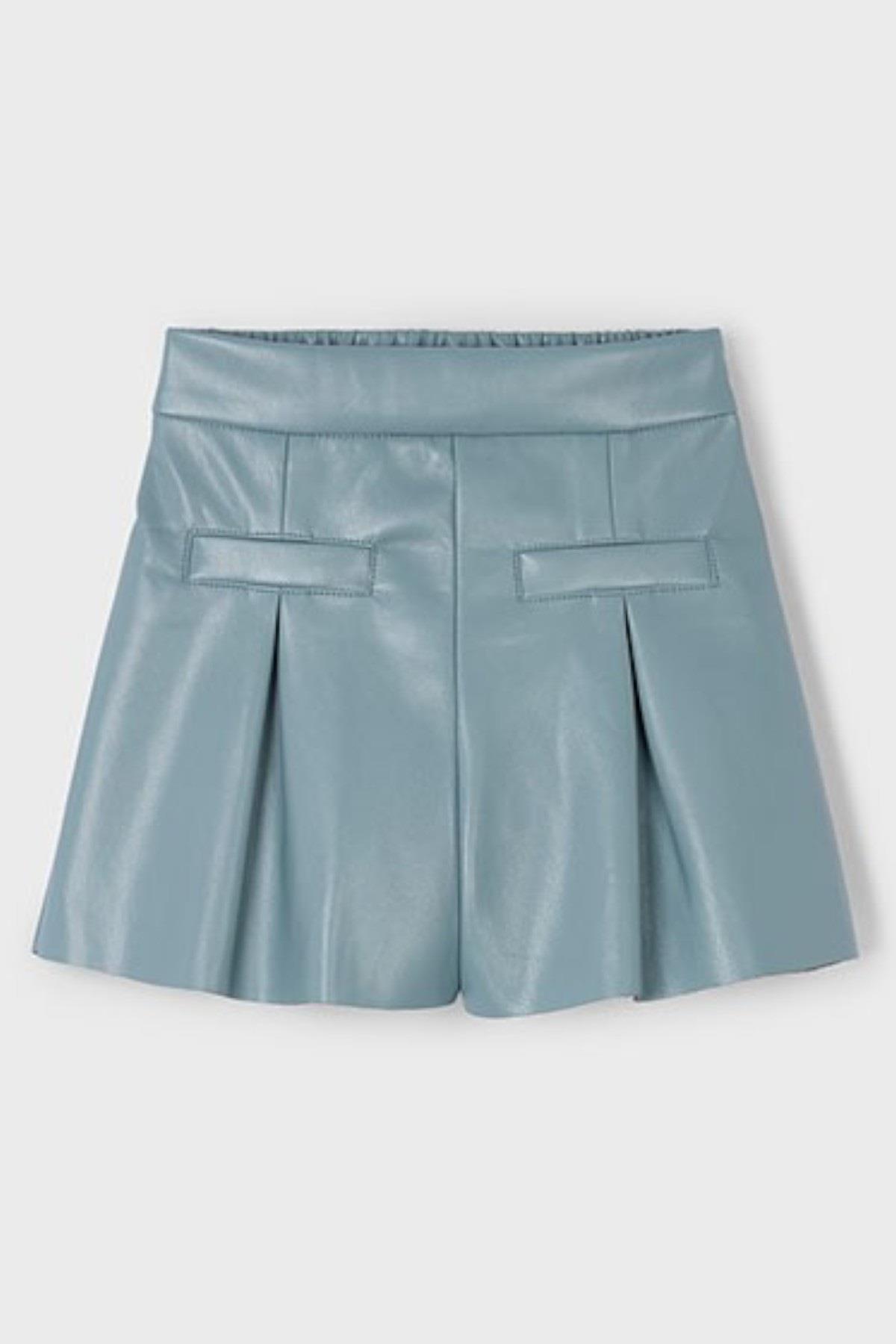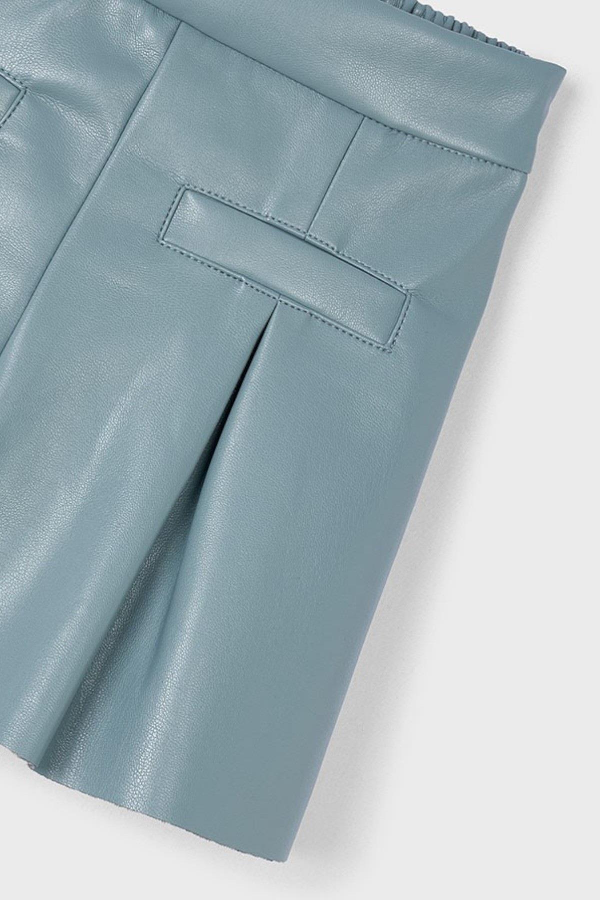 Mayoral Kız Çocuk 4-9 Yaş Pileli Cep Detaylı Deri Şort Turkuaz (26KKCMYR4223)