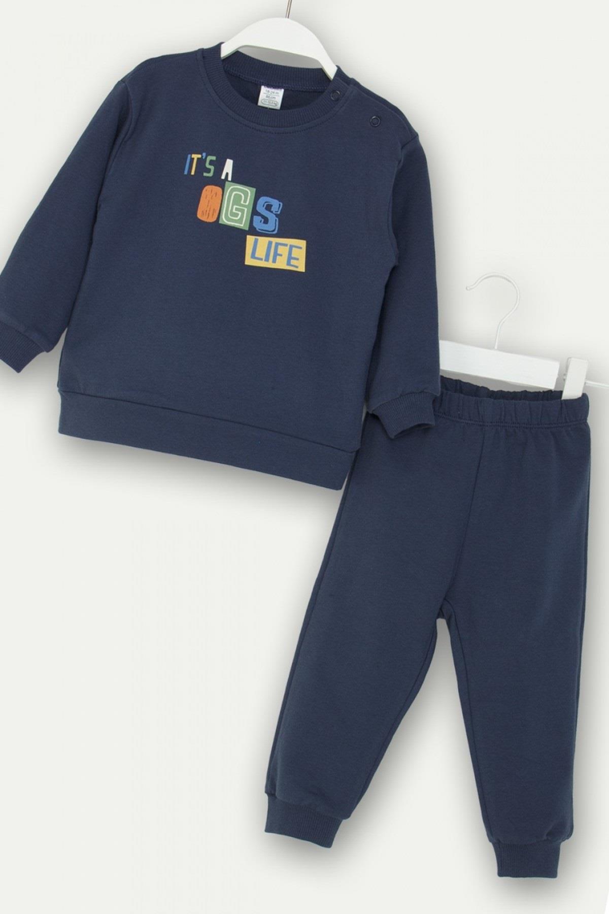Mojo Erkek Bebek 1-4 Yaş Desenli İkili Eşofman Takımı Lacivert (26KEBMJO4134)