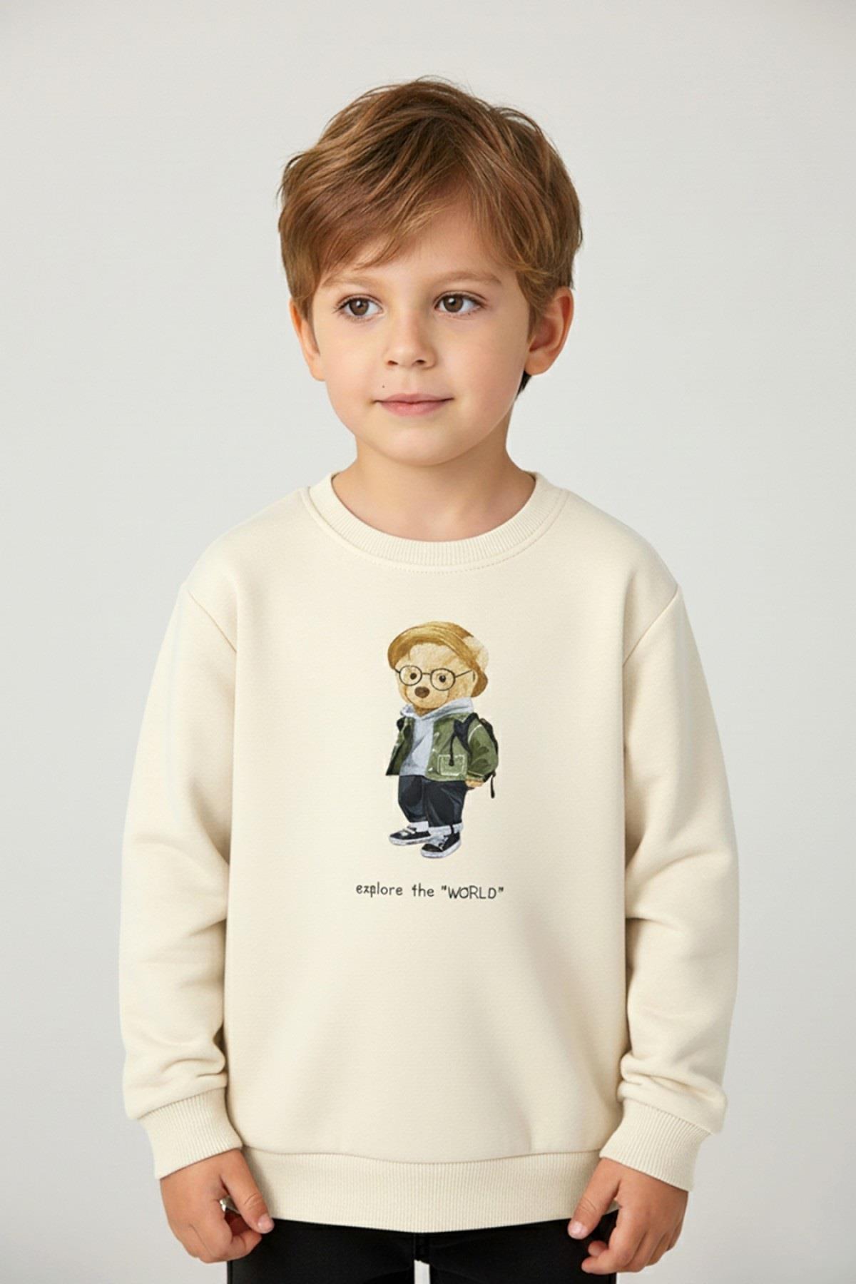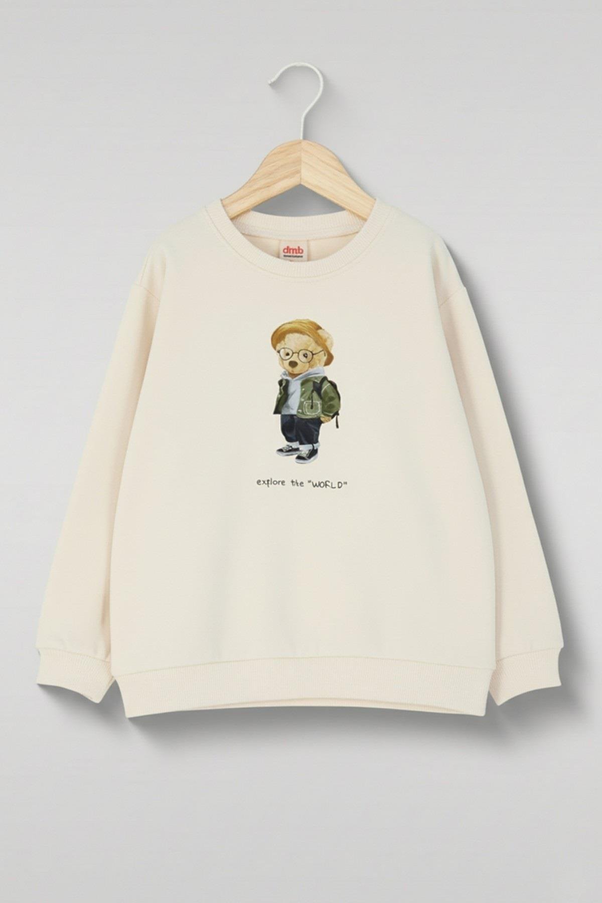 Mojo Erkek Çocuk 1-7 Yaş Bear Desenli Sweatshirt Krem (26KECDMB4142)