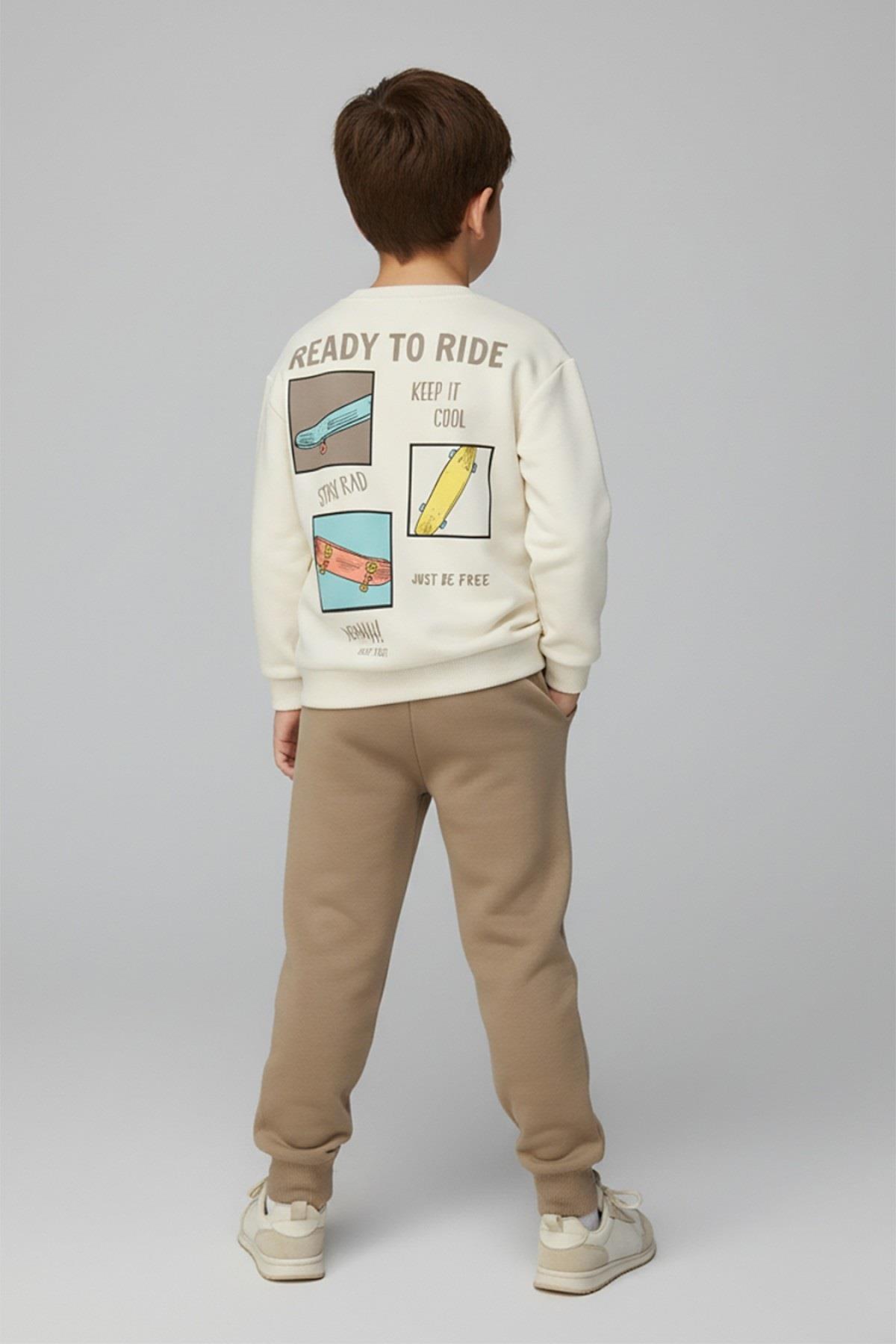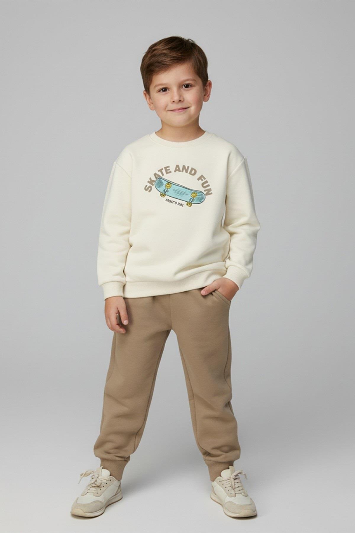 Mojo Erkek Çocuk 4-8 Yaş Kaykay Desenli Eşofman Takımı Krem (26KECDMB4106)