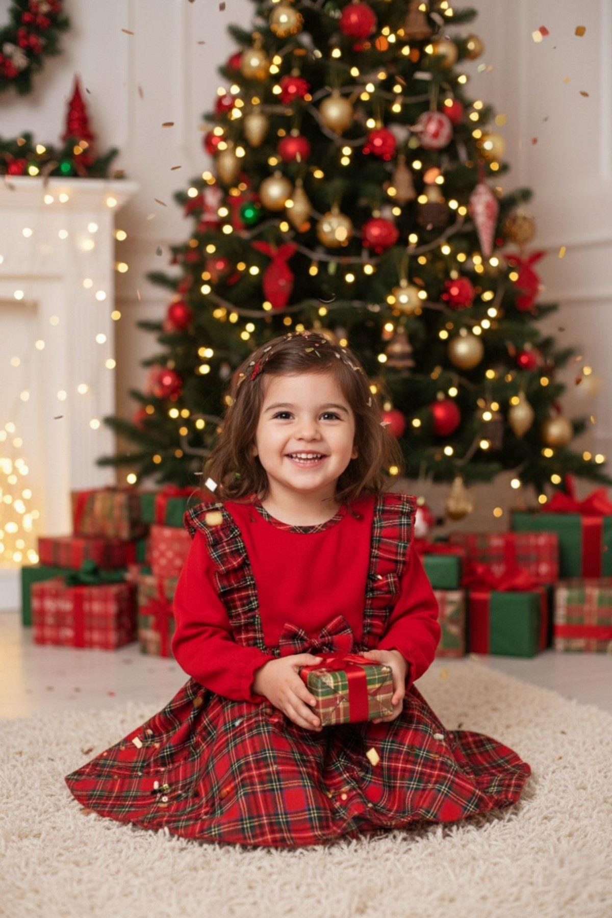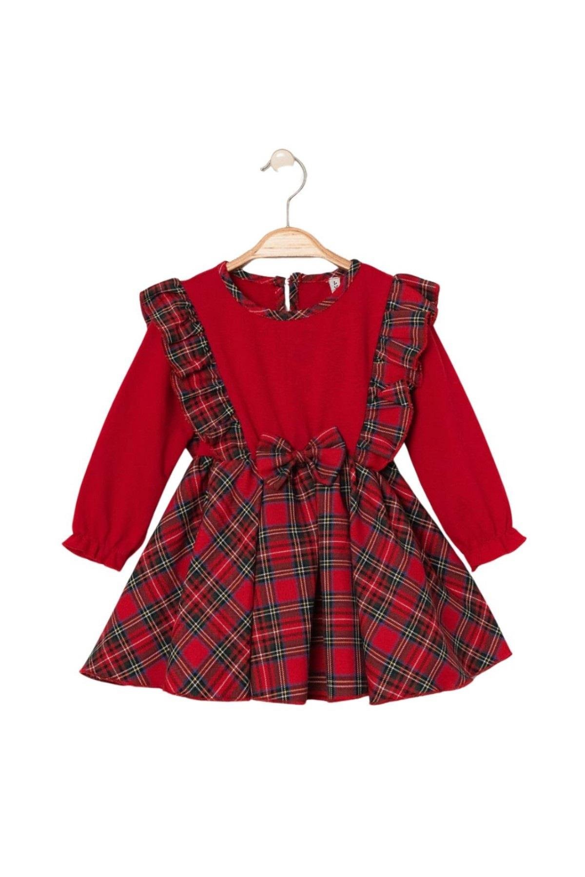 Mojo Kız Bebek 1-3 Yaş Ekose Desenli Kurdela Kemerli Elbise Kırmızı (26KKBMJO26056)