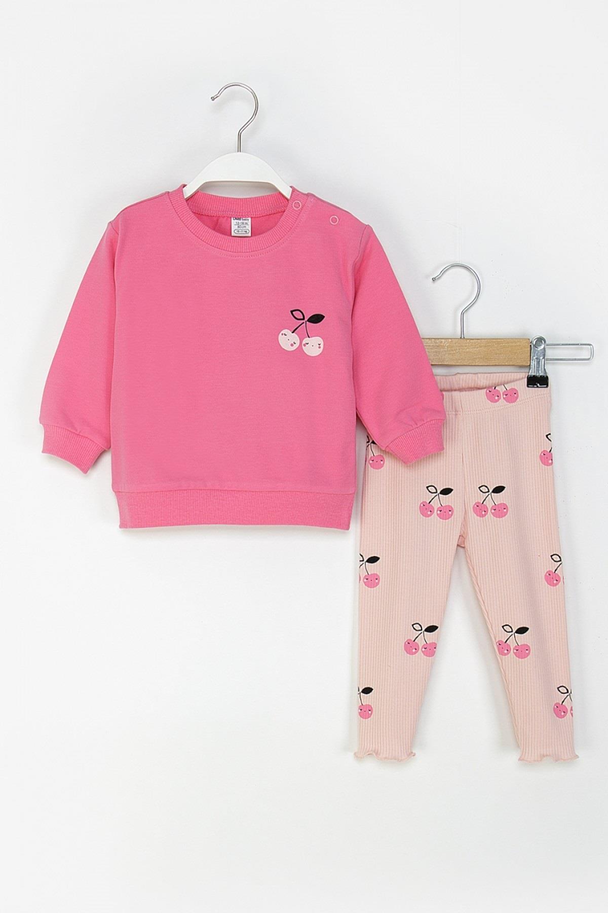 Mojo Kız Bebek 1-4 Yaş Kiraz Desenli Taytlı Takım Pembe (26KKKBDMB9832)
