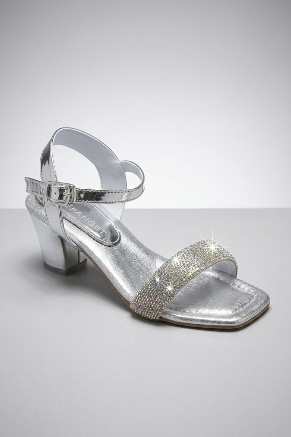 Mojo Kız Çocuk 31-36 Numara Tek Bant Taşlı Topuklu Ayakkabı Gümüş (26YKCMJOK99)
