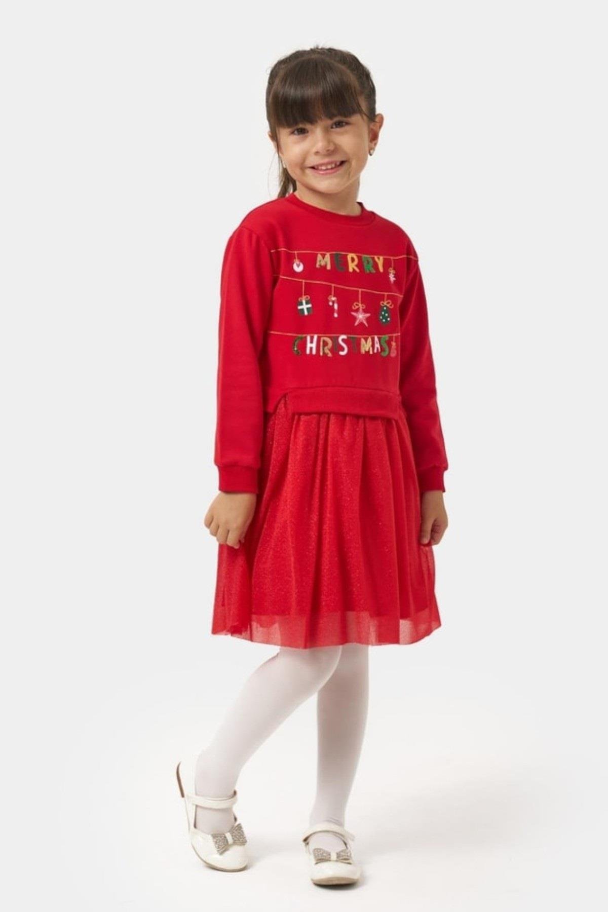 Mojo Kız Çocuk 4-7 Yaş Yeni Yıl Temalı Tüllü Elbise Kırmızı (26KKCMJO24905)