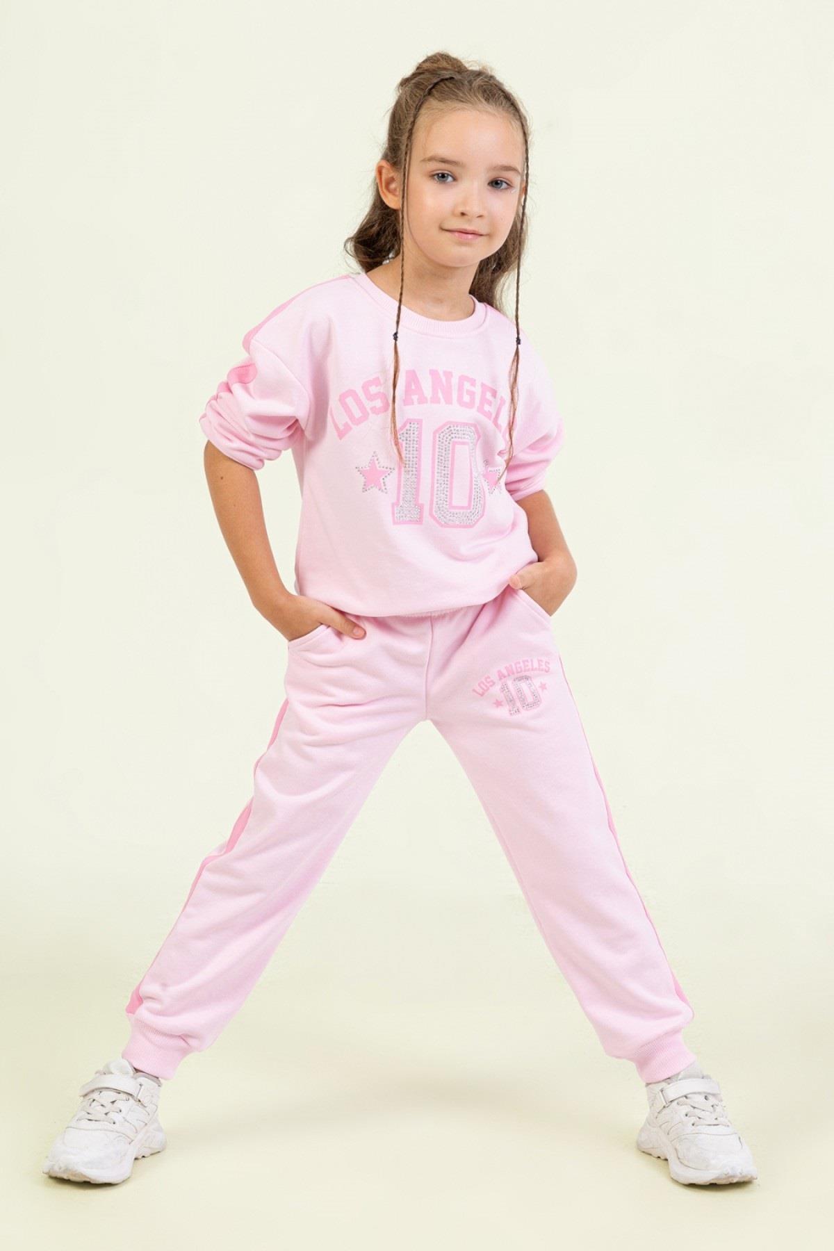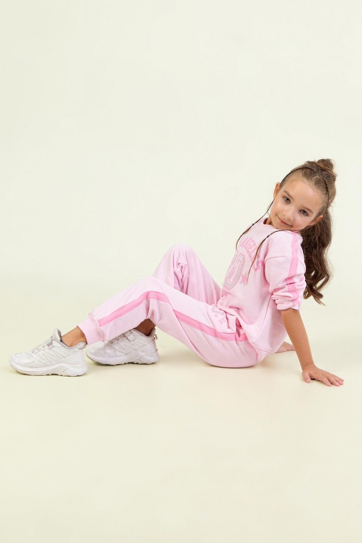 Mojo Kız Çocuk 4-9 Yaş Baskılı ve Taş İşleme Eşofman Takımı Pembe (26KKCMJO9843)