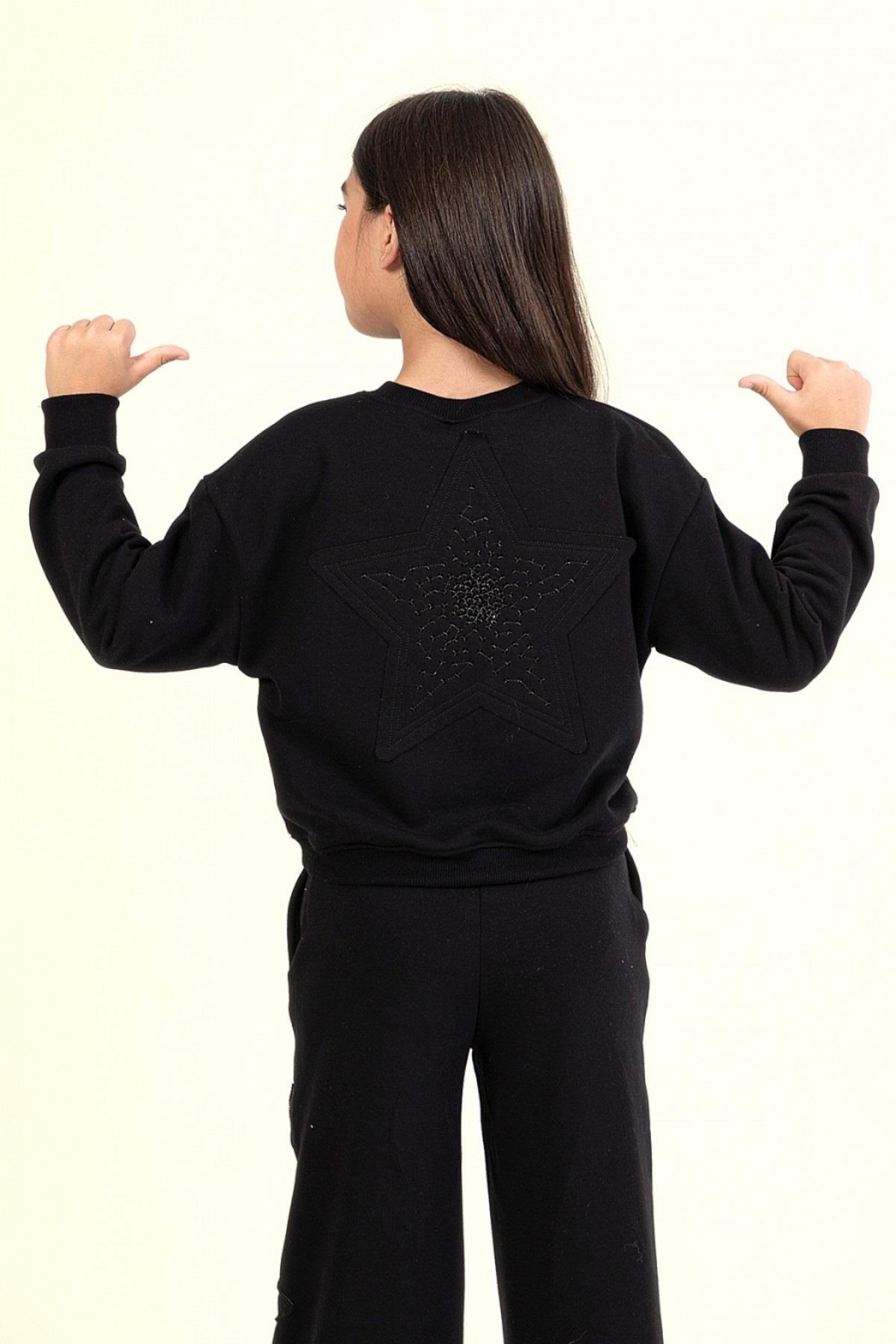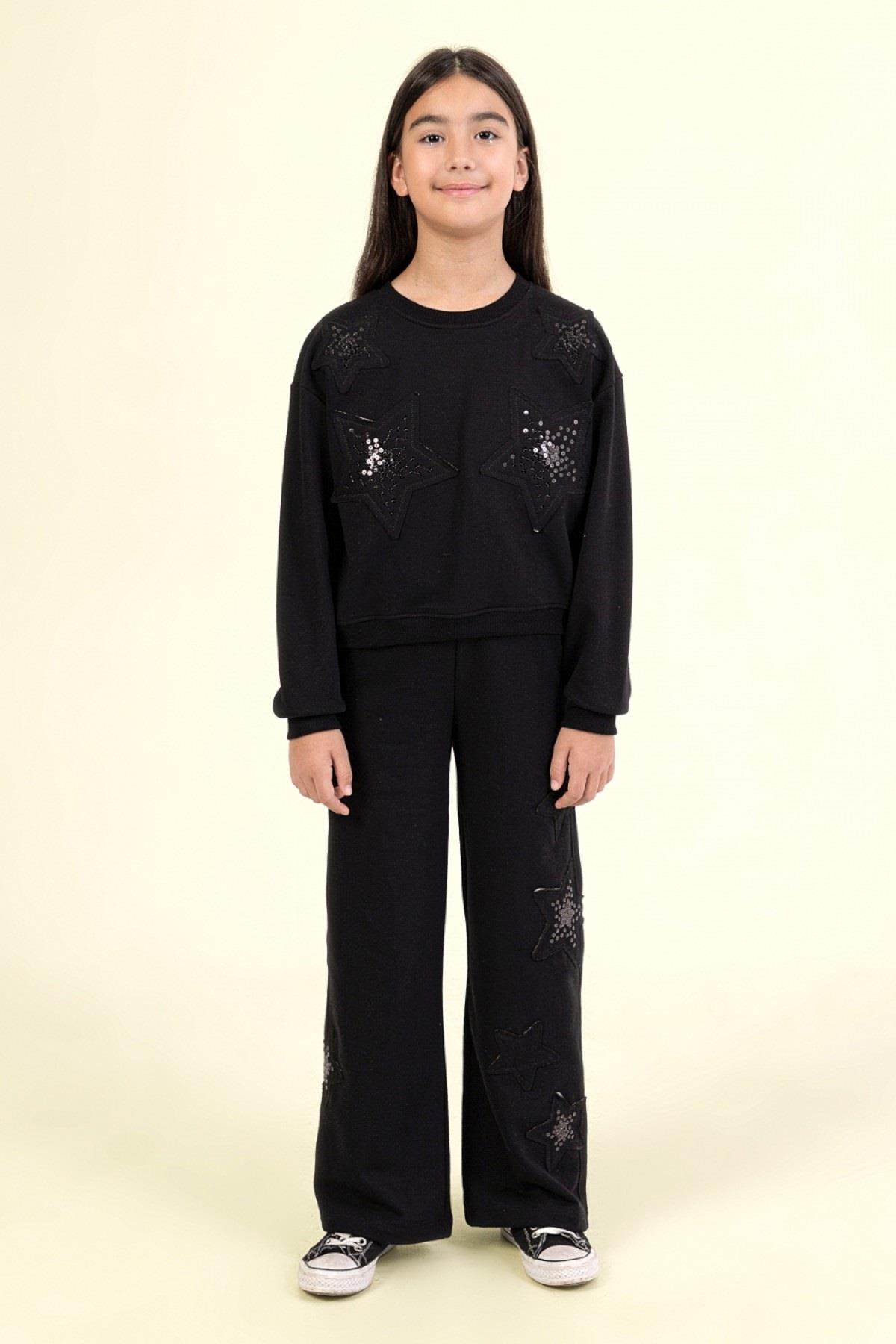Mojo Kız Çocuk 4-9 Yaş Yıldız Detaylı İkili Eşofman Takımı Siyah (26KKCMJO9841)