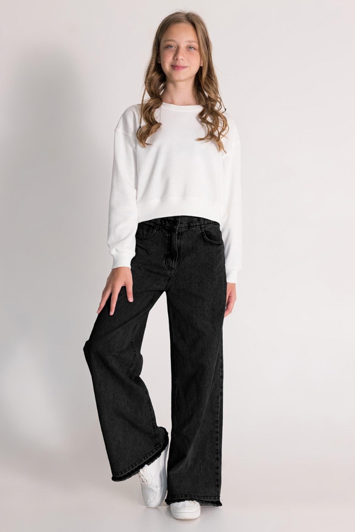 Mojo Kız Çocuk 9-14 Yaş Bol Paça Denim Pantolon 2985 Füme (24YKCDMB2985)