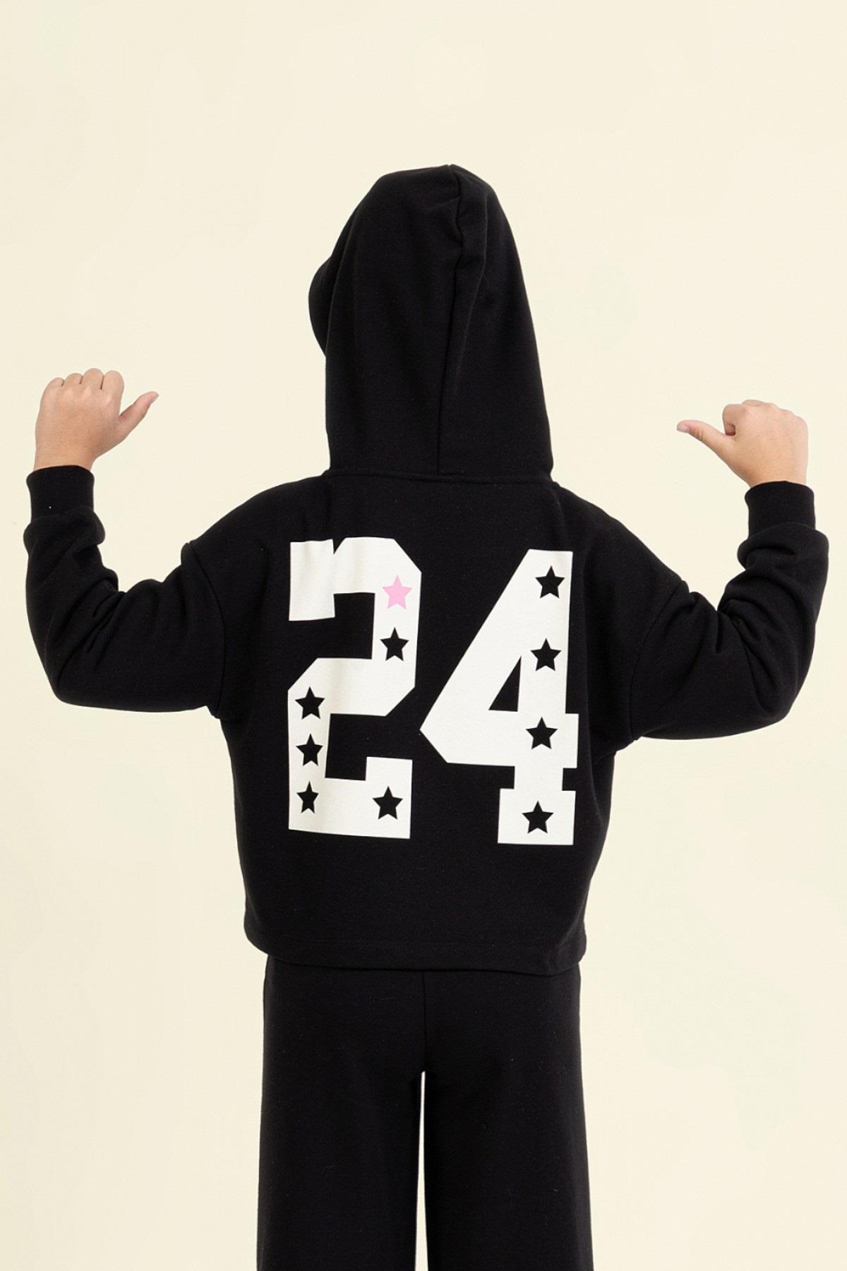Mojo Kız Çocuk 9-14 Yaş Sırt Baskılı Kapüşonlu Sweatshirt Siyah (26KKCMJO9859)
