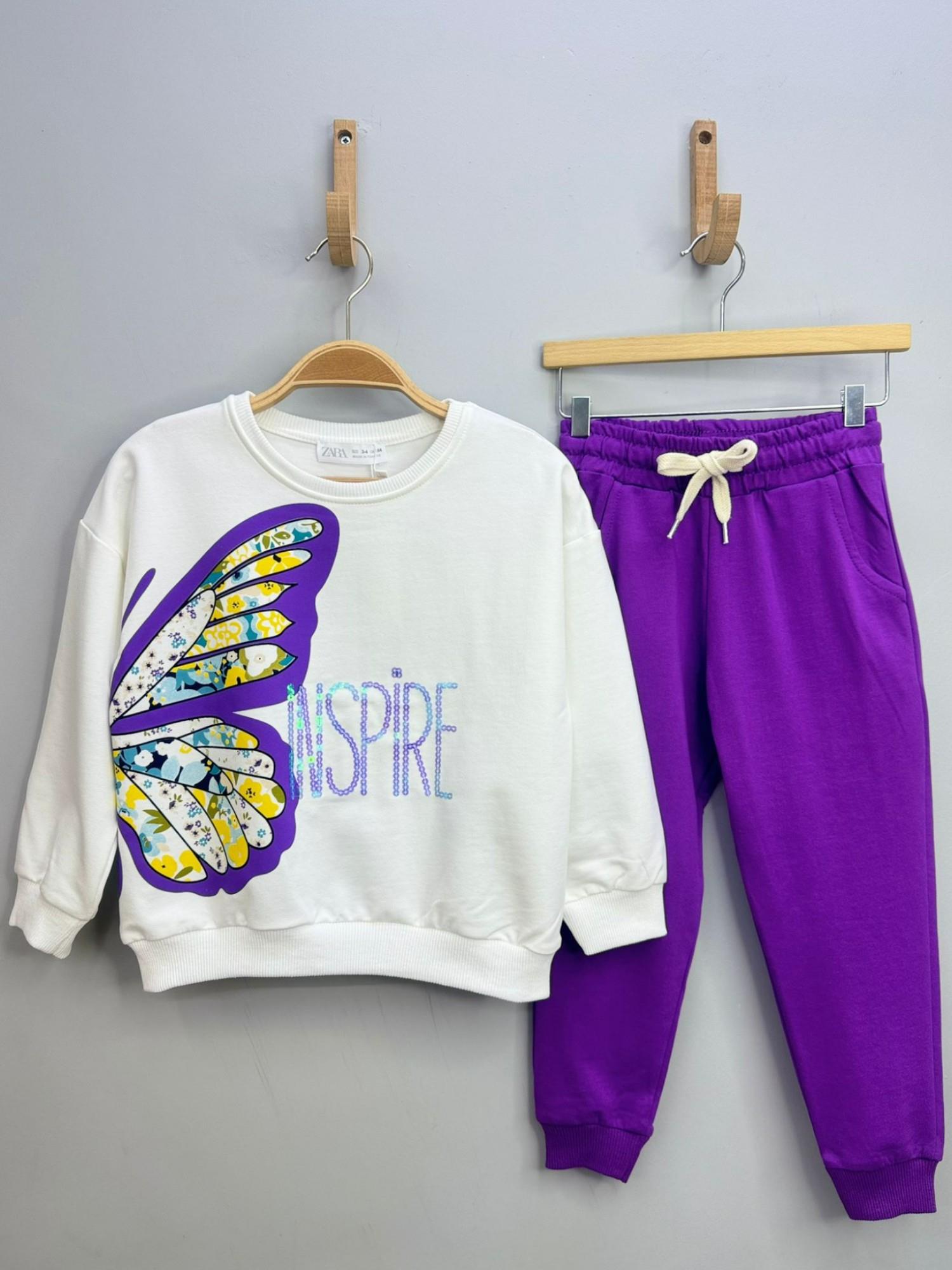 Mojo Kız Çocuk Pullu Kelebek Baskılı Eşofman Takımı 1511 Mor (24KKCMJO1511)