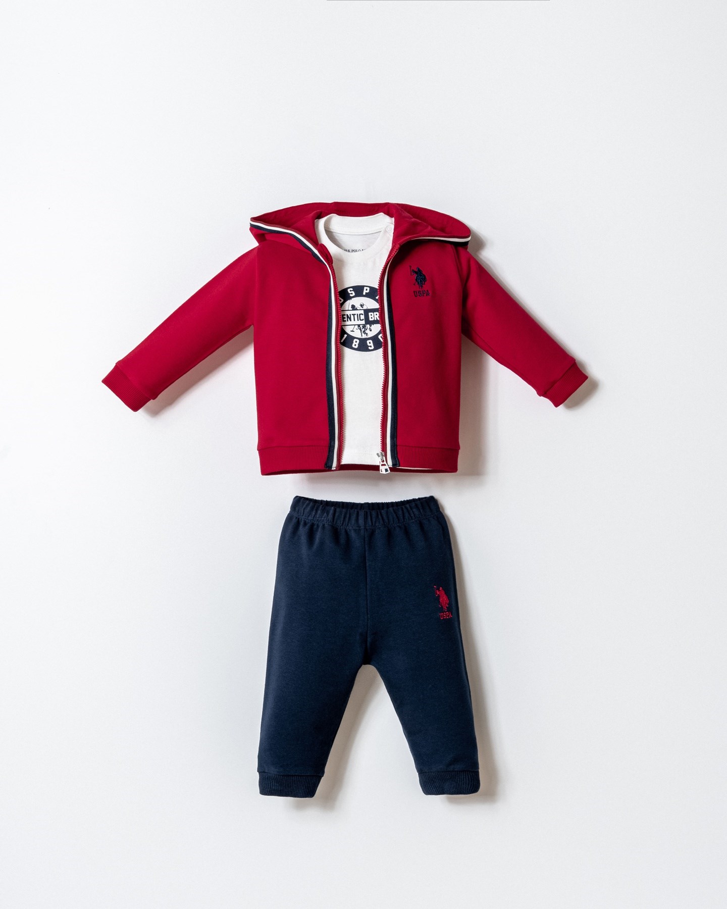 U.S. Polo Erkek Bebek 6 Ay- 3 Yaş Kapüşonlu Üçlü Takım Kırmızı (26YEBUSP2875)