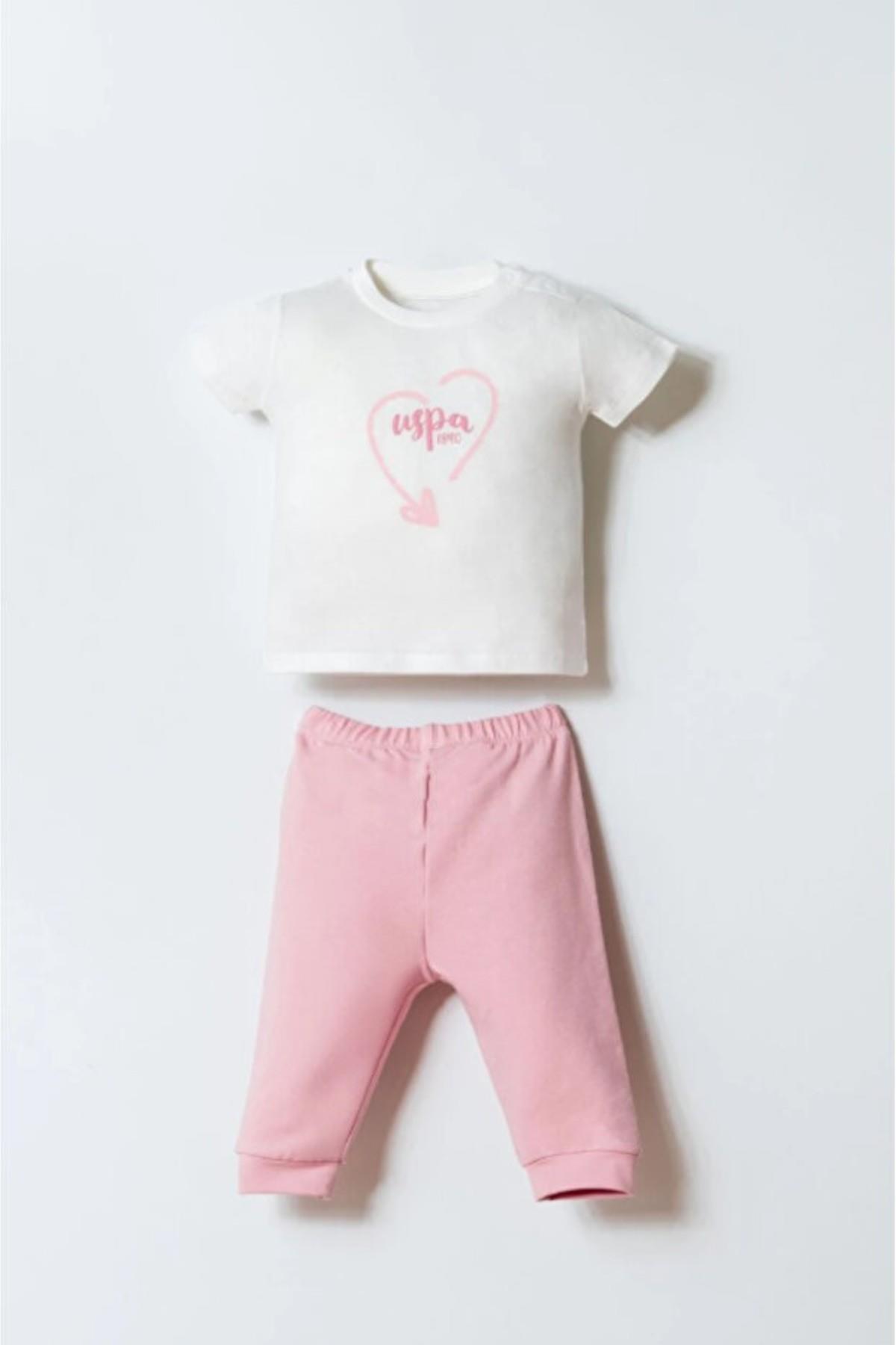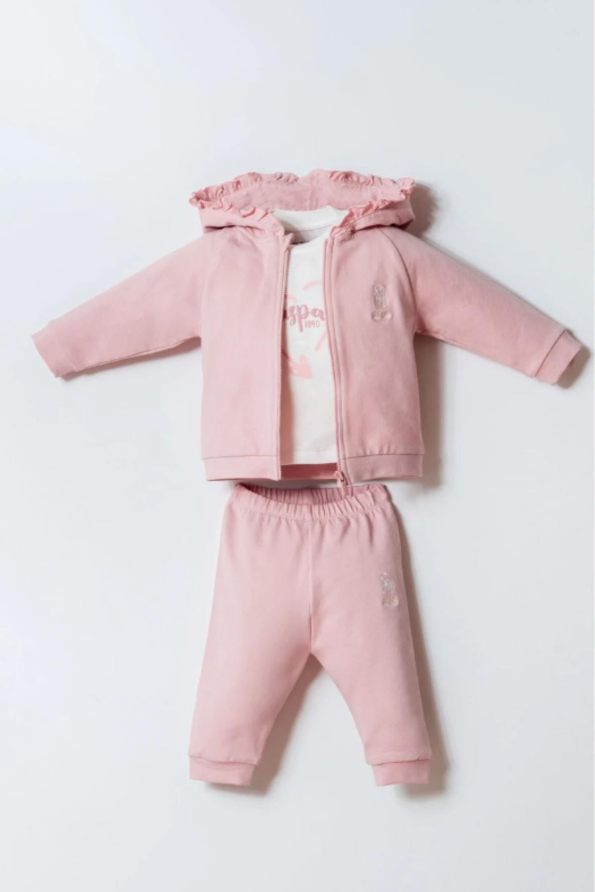 U.S. Polo Kız Bebek 6-36 Ay İki İplik Üçlü Eşofman Takımı Pembe (26KBUSP2975)