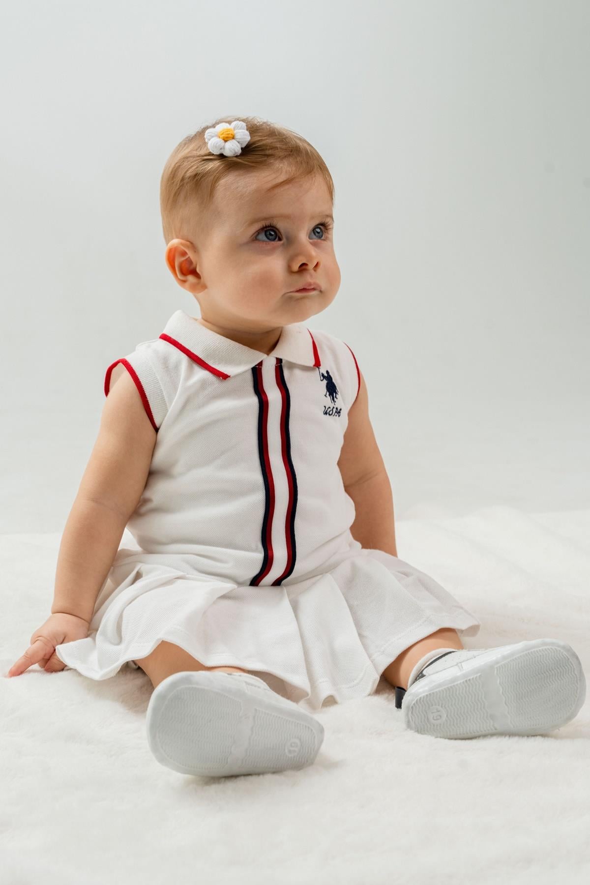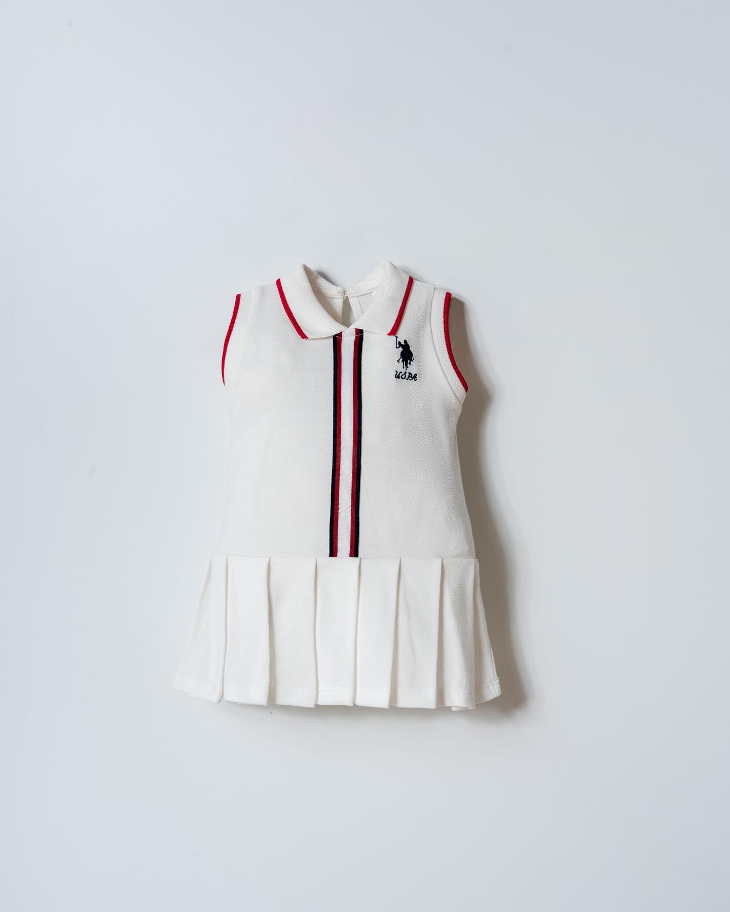 U.S. Polo Kız Bebek 6-36 Ay Lakos Pilise Etekli Elbise Beyaz (26YKBUSP2960)