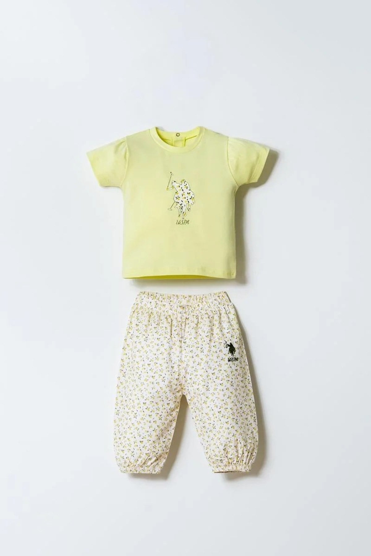 U.S. Polo Kız Bebek 6-36 Ay Limon Baskılı Pamuklu İkili Takım Sarı (26YKBUSP3023)