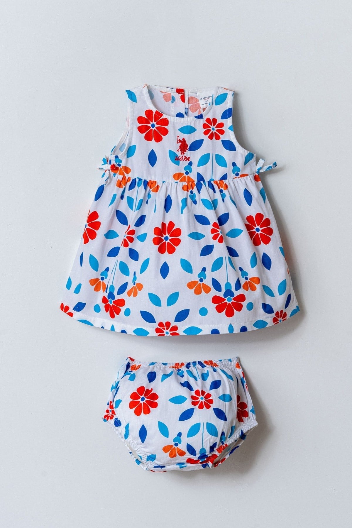 U.S. Polo Kız Bebek 6 Ay- 3 Yaş Çiçek Desenli Dokuma Elbise Beyaz (26YKBUSP3001)