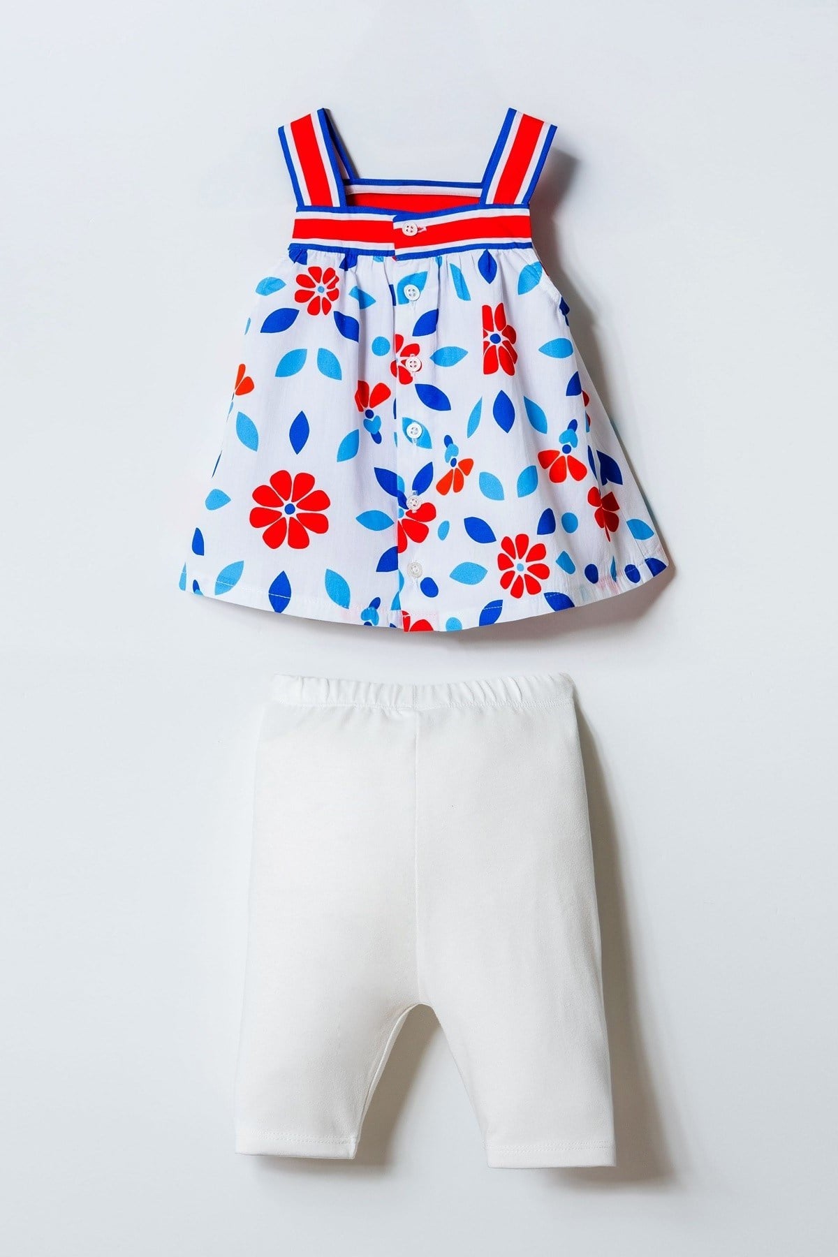U.S. Polo Kız Bebek 6 Ay-3 Yaş Çiçek Desenli Taytlı Takım Mavi (26YKBUSP2998)