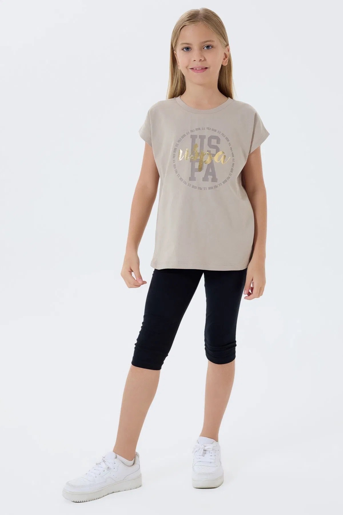 U.S. Polo Kız Çocuk 4-15 Yaş Desenli İkili Taytlı Takım Taş Rengi (26YKCUSP2511)