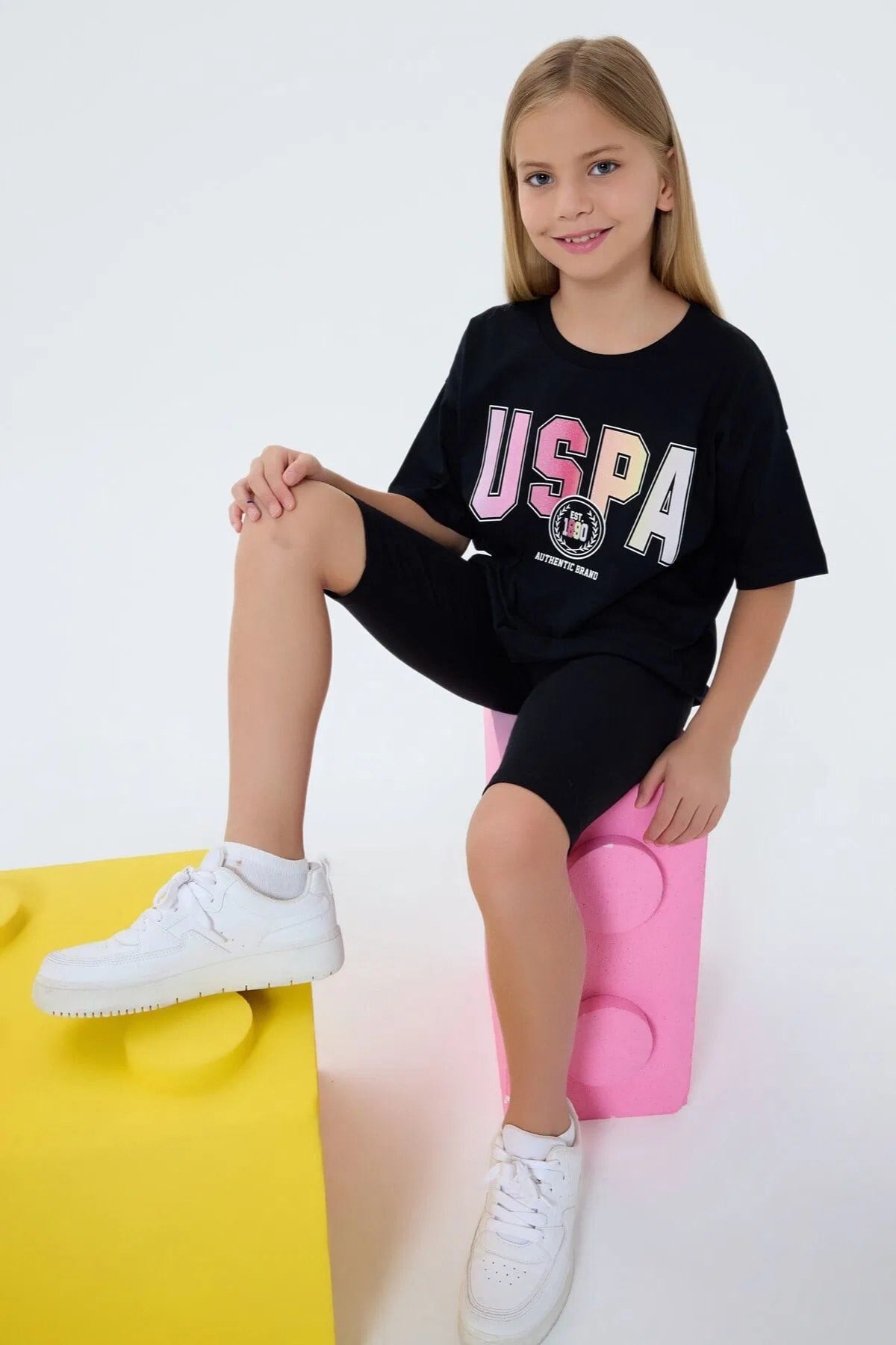 U.S. Polo Kız Çocuk 4-15 Yaş Logo Desenli Taytlı Takım Siyah (26YKCUSP2517)